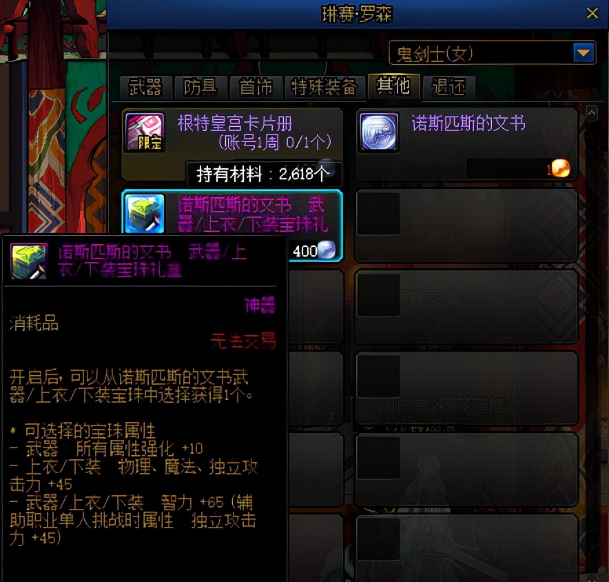 2、项链:2011年祈愿吊坠(力量+6,智力+2,物理暴击+2%,每分钟回复9MP)